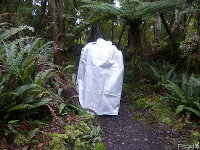途中会经过一些已经不能再用的机器,我没去留意这些机器到底有什么用途。在路上也有看到一袋大大袋白色的袋子,相信可能是纽西兰政府利用直升机运送进来森林,应该是用来建设的物质吧。