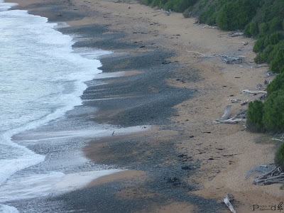 等了许久,当我们都要放弃时,终于看到远处的海滩有一个小黑点从海里回岸。由于这个隐藏观望台距离海滩实在是有一些远,我就只能看到一个小黑点走走跳跳的走上岸。相比我之前在另一处看企鹅的Roaring Bay,这里还真的看不是很清楚啊。。。Roaring Bay看到的企鹅还比较明显哦!!!