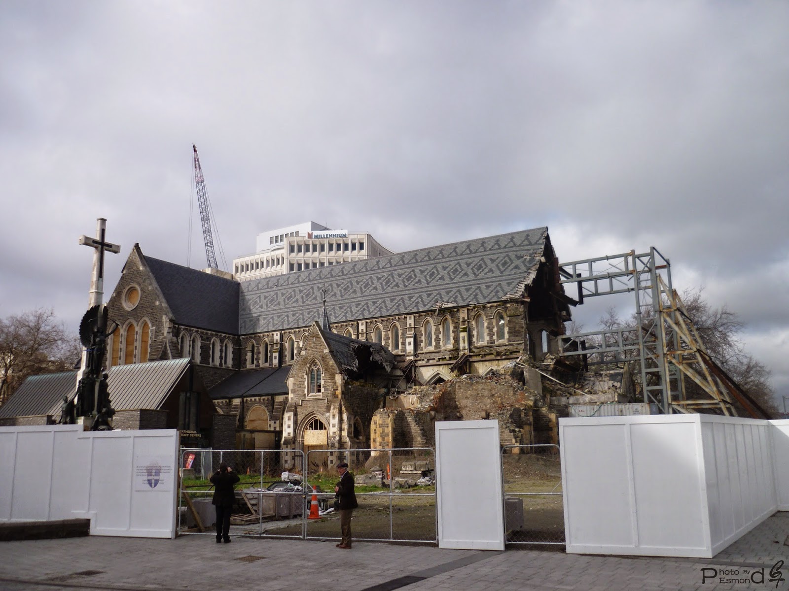 不知什么原因,Christchurch的复苏工程进行的比想象中更慢。过去了两年,Christchurch还是蛮多地方在进行这复苏工程。就像之前来到Christchurch一定会来参观的Cathedral Square,也还是周围围着围墙,不允许外人进去。透过围墙望进去,感觉这间教堂还是保持这地震后的样子。