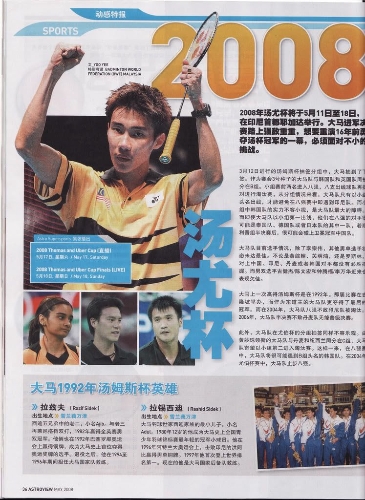 相比之下,馬來西亞隊向來比較君子,缺少前瞻性的操縱排名等“遠見”動作,若無意外名單公佈時,4位男單不外是李宗偉、黃綜翰、哈菲茲及阿里夫(或陳俊翔);3組男雙是李萬華與鐘騰福、古健傑與陳文宏及查克利與法魯茲祖安。