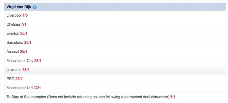 更新一下赔率情况(昨晚),范迪克的赔率情况比上午更加乐观