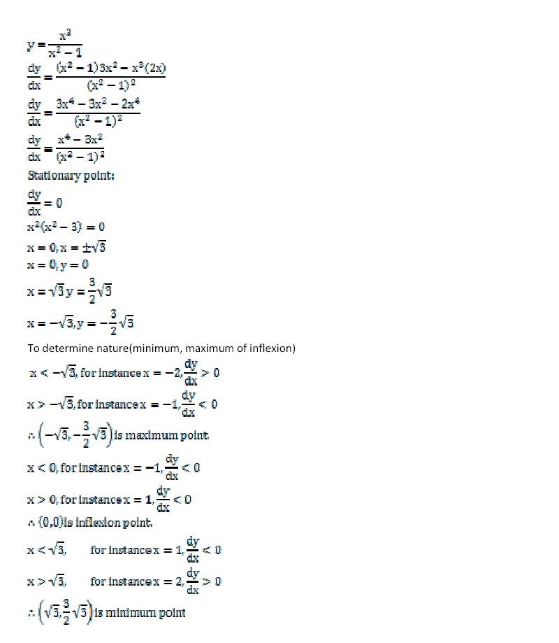 Find the coordinates of the stationary points on the curve y=x^3/(x^2-1) and determine their nature .