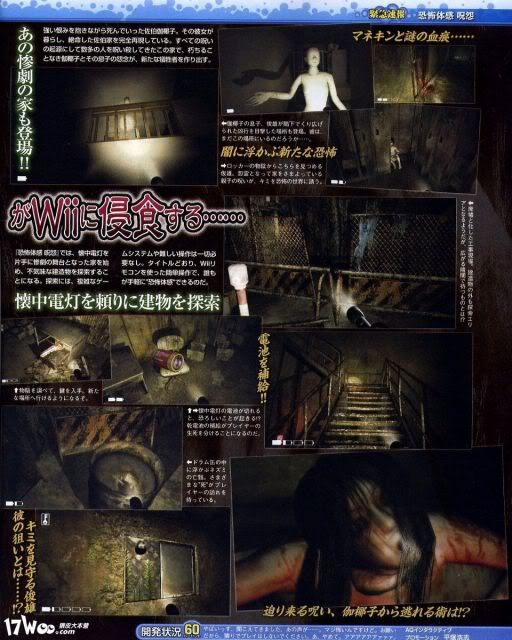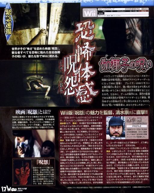 玩《零》时我都怕下怕下了,这个就不用讲了,不过还真想玩下,咒怨电玩版,想像不到到底要怎样玩,在电影里遇到枷野子的都是死路一条,如果游戏里有出现武器还是什么的,真的会很囧下(拿刀砍枷野子? ),不过如果是专玩逃跑的,应该会很刺激吧,很怀念那把声音和猫叫声 ...