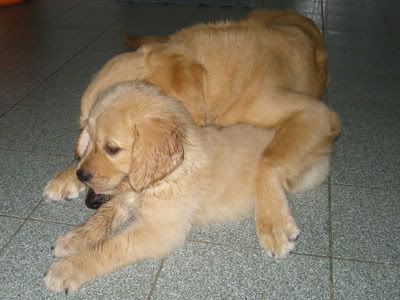 今天头来风,看到宠物店有卖golden,考虑一下后,直接去按钱买了一只回来给pista做伴。 哈哈!其实考虑蛮久了啦,一直到titan来我家玩后,我男友决定一定要买一只想titan那样的champion line给pista做伴 ...