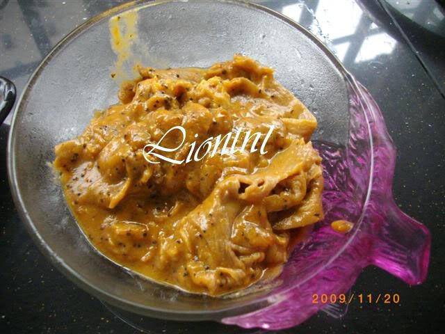 黑胡椒牛肉片,看到牛肉料理会很兴奋。。我喜欢牛肉多过猪肉,可是嫁给拜观音的老公,所以没有什么机会吃。。 |