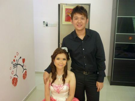 下午4点和化妆师商量我喜欢的妆和发型后开始化妆咯,那时好累哦,化妆时都快睡着了,呵呵!