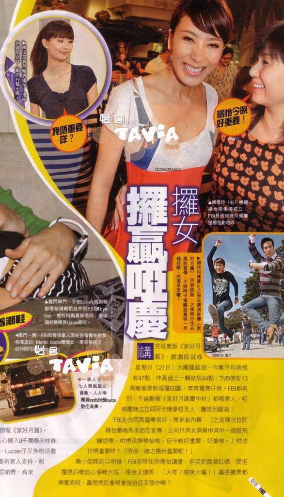 《家》劇熱爆全城,前晚大結局收視彪炳,高潮於心女將阿媽紅姨的餅店七成股份轉送給Jo飽,創下最高50點收視,平了05年《大長今》的收視紀錄,為本地創作劇集爭一口氣,高層及贊助商的祝捷飯局更欲罷不能。