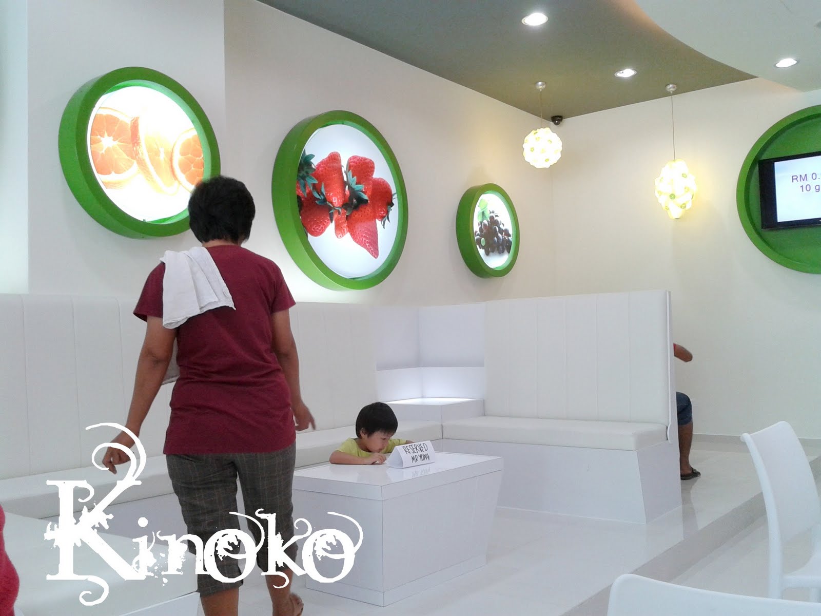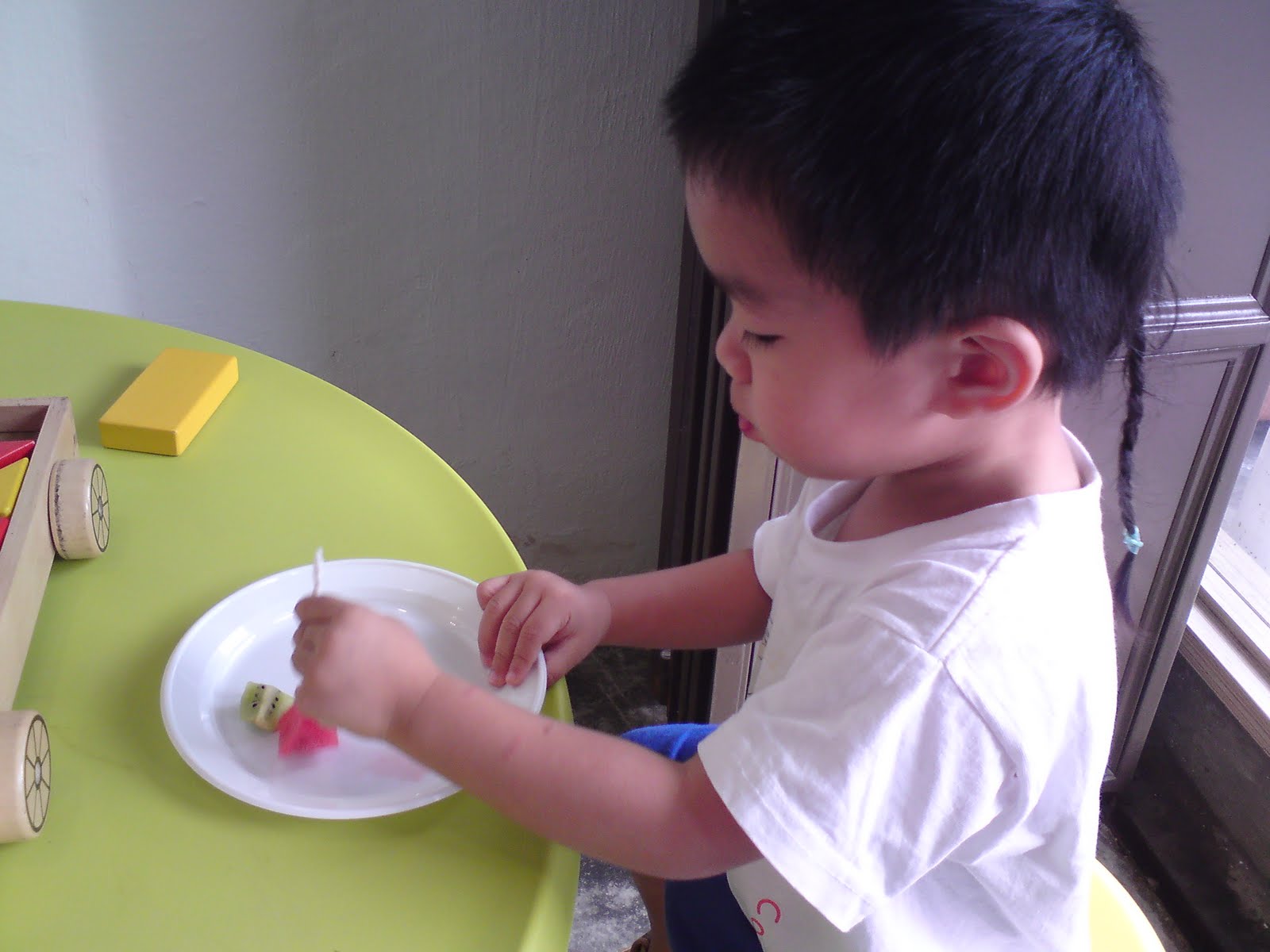环境是很好的,还有小孩的桌子。你看他多享受吃水果^^