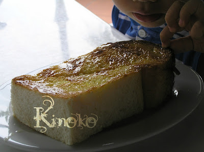 这个牛油牛奶土司很好吃。不会涂得太厚。孩子吃了半片耶~