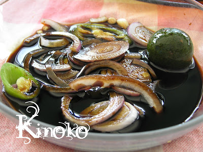 沾这个黑酱油吃。不辣的,他会另外提供叁巴给我们。