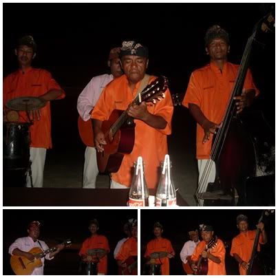 看完日落我们才开始用餐。吃到一半,有乐队来这边每一座唱歌可是要给小费的。