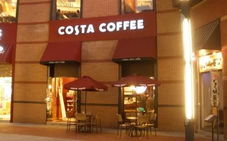 **Costa coffee,来自英国的咖啡连锁店。与“星巴克”的绿色装潢不同,costa coffee以“沉稳”的红色为主打,让人一进门就感觉“暖暖的”。拿铁是保留节目,咖啡香和奶味交融得“恰到好处”;融融冰系列是“夏天”里的最爱,年年都有“新”口味推出,实在叫人期待。难得悠闲的下午,不如去那里坐坐吧。(网摘)