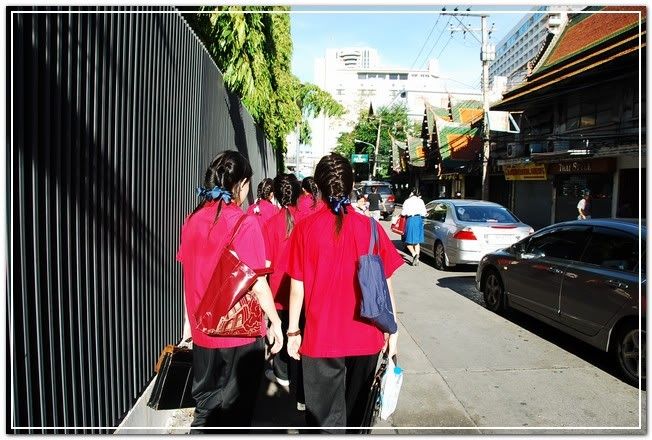 早上七點多走在曼谷街上,和學子們一起上學去。