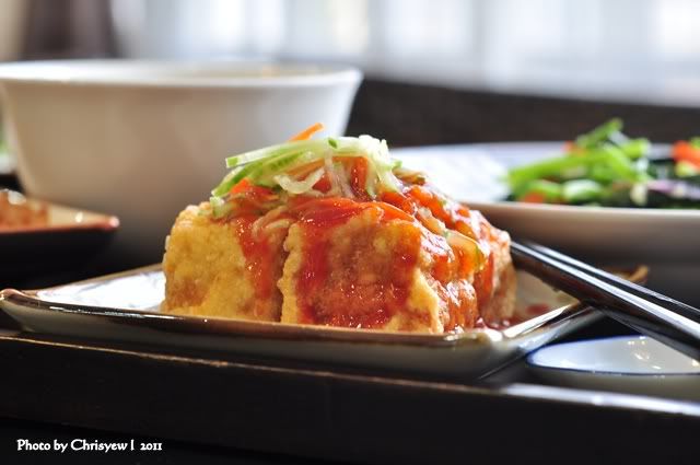 方法 - 1.豆腐切成4个 沾上蛋清薯粉炸至金黄捞起(滤干油)