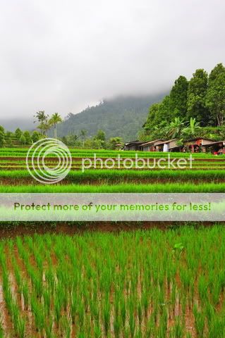 走向瀑布前的绿油油的稻米梯田,难得能看到阴天弥漫的情景。