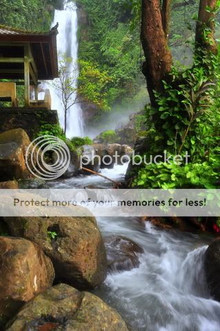 Gitgit 瀑布冲下来的水力可不是开玩笑的,即使在一段距离我们还是感觉好想是倾盆大雨从横向打过来。我的相机和镜头没一下子就湿透了。