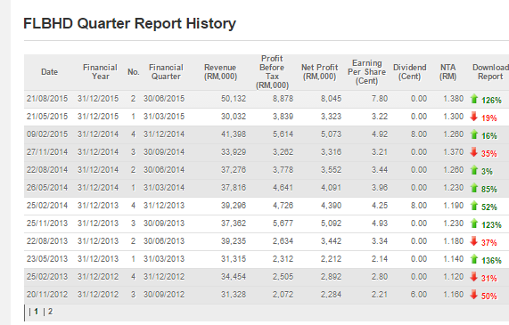 最让人欣赏的是,这家公司已经连续两年派发8仙的股息。更惊喜的是,FLBHD之前都是在12月公布股息,这次第一次在7月30号给了5仙的股息。所以很多股东都期待年底会再度派发5-8仙的股息。