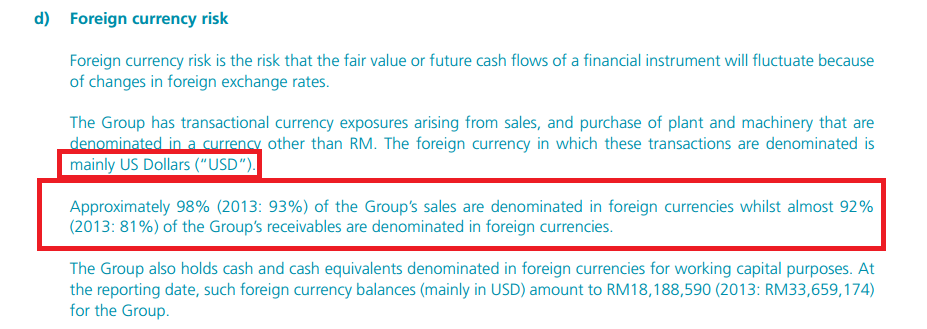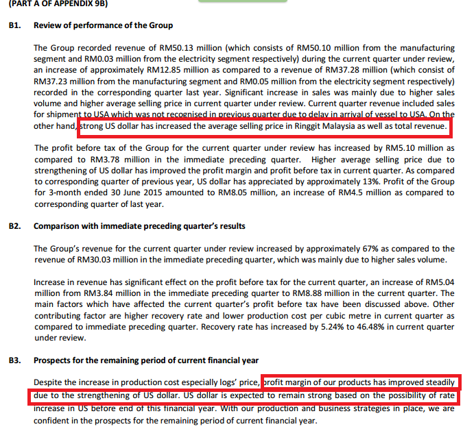 令吉兑美元汇价疲软对出口商有利,而它的利润率有望提高,因为该集团的产品价格是以美元来计算。