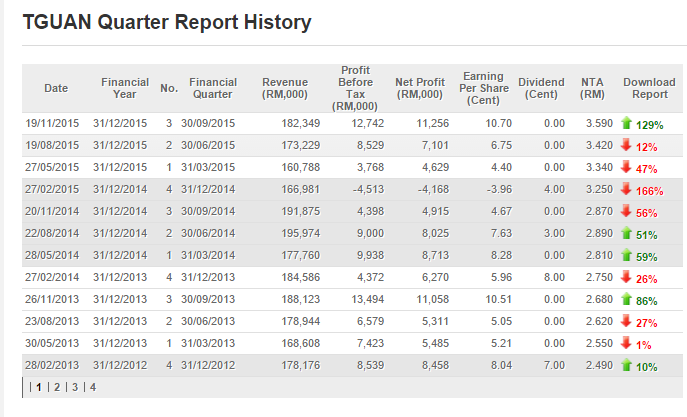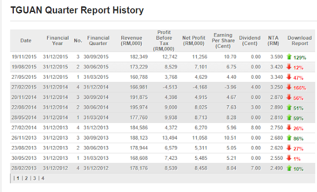 上图是TGUAN过往的EPS记录,笔者发现除了2014年Q4蒙受亏损,这家公司之前一次的亏损还要追溯到2008年Q4的金融风暴时期。因此笔者认为这家公司是一家营运能力出色的公司。经历2014年以及2015年的休整期,笔者深信2016年才是这家公司展翅高飞的一年。