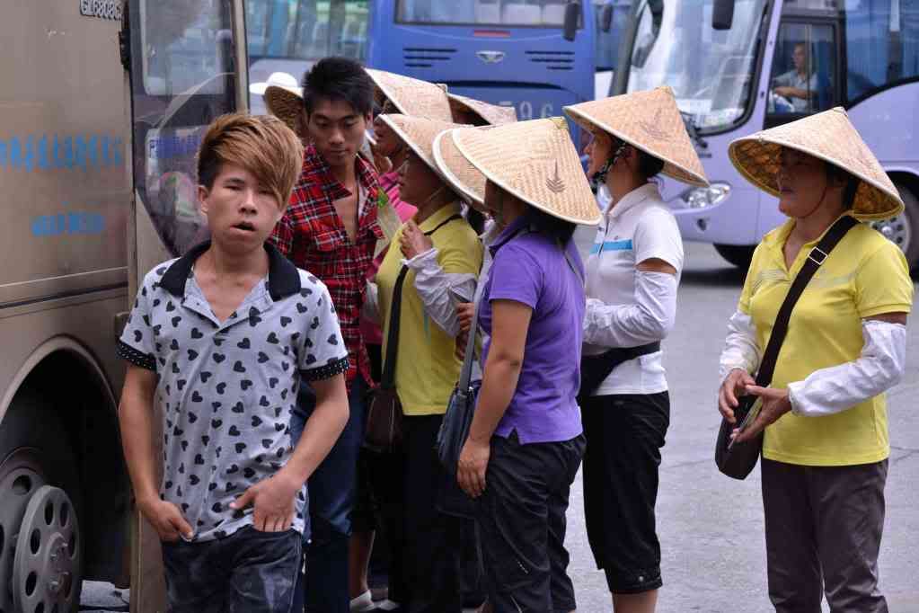每当有巴士驶入汽车站,就会有一群“热情”的“帽民”蜂拥而上
