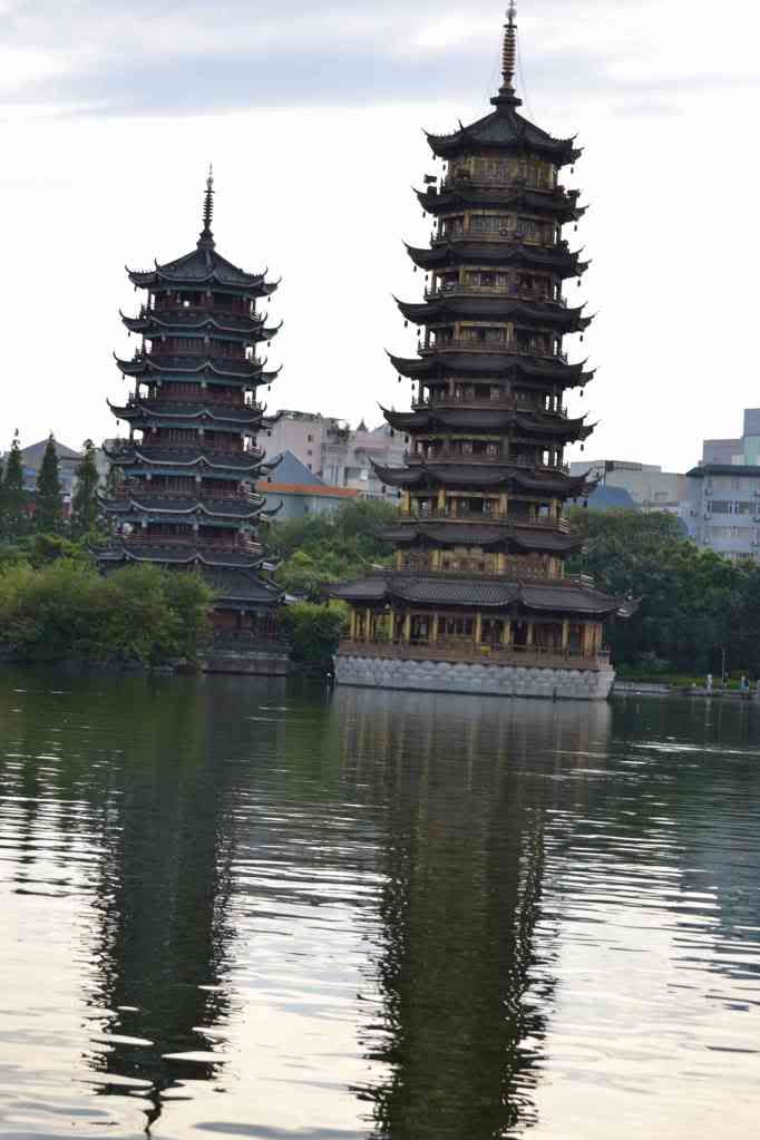 从酒店步行到杉湖,经过象山公园,然后到日月双塔,一路上绿树成荫,很适合步行。