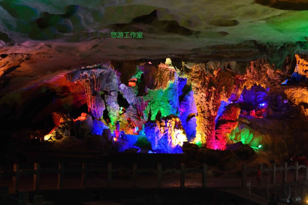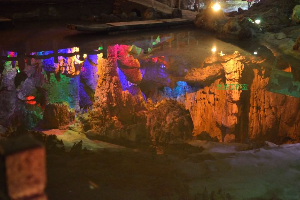 下有木舟轻泛暗河。冠岩岩洞内景观各异,静者幽深寥寂,千姿百态,动者汹涌澎湃,气势恢弘,海陆