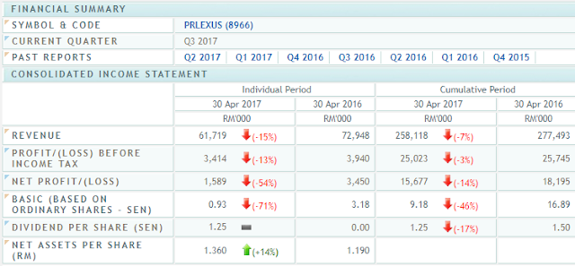 总结来看,PRLEXUS接下来的季度营业额是最为重要的指标,因为过去六年PRLEXUS第四个季度营业额都是年度最高的,如果下一个季度营业额还是如此低迷,那就。。。。再见咯。 |