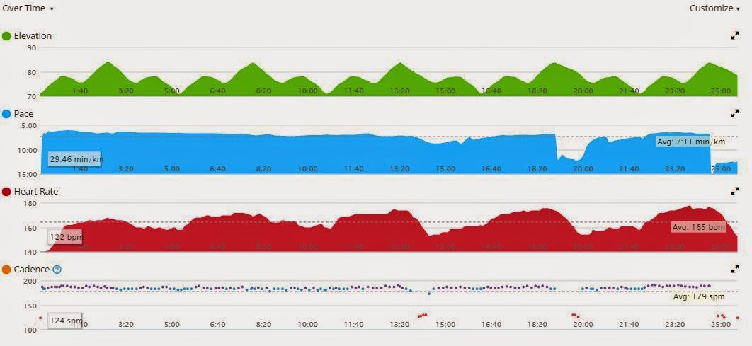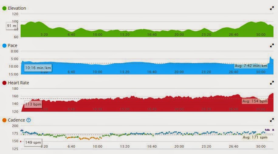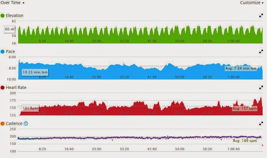 我觉得这次我跑得很好,配速介于6分以上,7分以下,很稳定。唯有心跳让我我觉得还是太高了!额外的1公里,也让我完成了有史以来最长的距离。