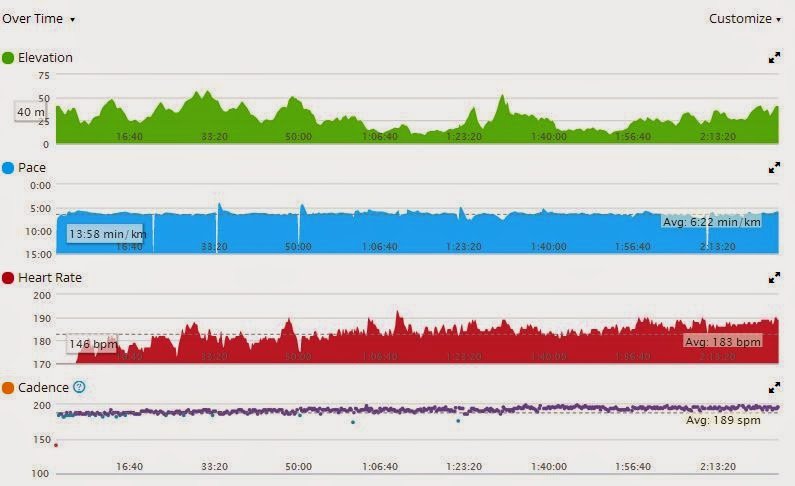 目标: 1) 不走路 2) 2:14:40 3) 前半段配速 6:30 4) 后半段配速 6:20