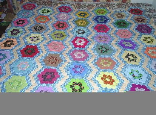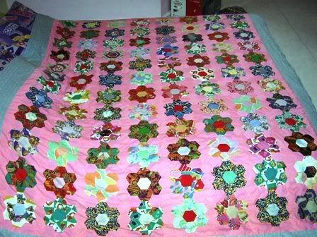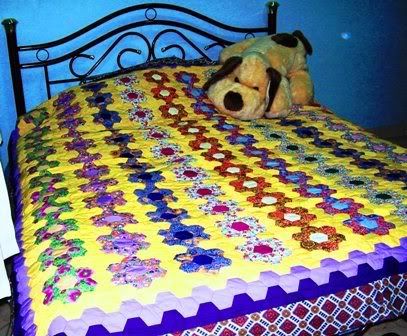 我喜歡這種拼布被子...很溫暖..我以前也有1件....我媽媽做的...不過爛了..我媽媽丟了>_< |