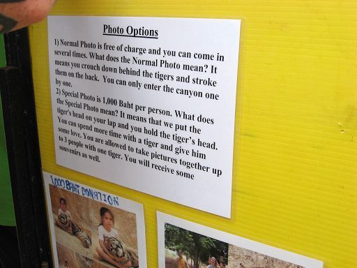 special photo要 1000bath,可以三人合照,但是只有其中一人能把老虎頭靠在腿上拍照