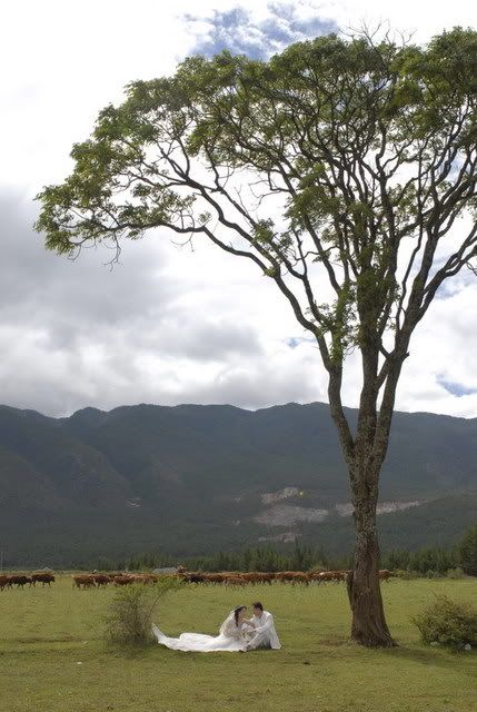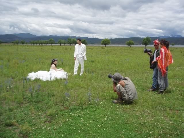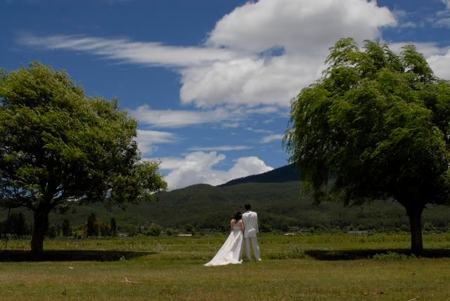 话说我们吃了早餐后,乱乱的走,走着走着,迷路了。 然后途径丽江经典, 刚好看到有个满脸胡子的小伙子,百般无聊之下和他聊了起来,这一聊,在看了他们的照片,一向坚持不要拍婚纱照的我, 在阿麦怂恿下,竟然点头了。 就算到了今天我也不明白为什么当时会有那个决定,何况还是在旅费拮据的情况下。订了四天后的拍摄,会从丽江拍到香格里拉,然后我俩会自己从香格里拉出发到梅里,再回来丽江。