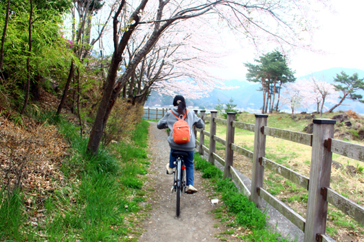 虽然天寒,但依然骑着单车绕湖悠悠观摩,路上小径旁不少樱花树