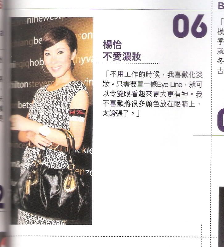 跟YoYo做訪問真的很開心,因為她有很多IQ問題問你的,而且因為她的爽直不做作令你很舒服,只要她可以做的便一定做,她更是愛恨分明的人,難怪在圈中她有很多的朋友,好像陳豪、黎諾懿及楊怡等,說真真的是很難得的事,也希望YoYo的性格可以繼續Keep下去,可能太直的性格在娛樂圈是一個之命傷,總給人誤解。 |