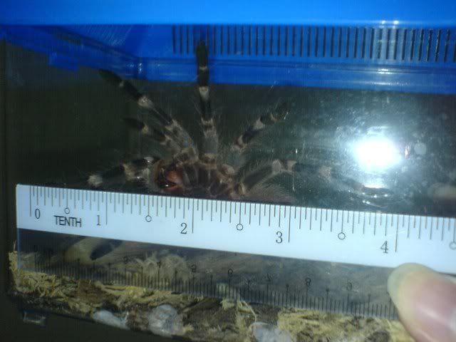 至于不吃东西的问题,也不必太担心,你大可两个礼拜才喂一次,tarantula本身是可以久久不吃东西的,只要humidity有兼顾好,真的就ok了。。。