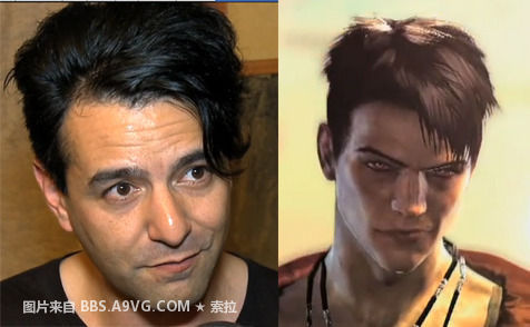 左边的图就是《DMC:鬼泣》的创意总监制Tameem Antoniades,右边的则是这次新作《DMC:鬼泣》的主角但丁,长的像也得有个限度啊,完全就是真人了,本不抽烟的但丁难道也是和原型一样习得了抽烟?看来但丁果然难敌幕后黑手,神谷的《鬼泣》至少没有把自己的形象塑造成但丁吧。最后这位总监还说新但丁实在太酷了,其实他在说自己吧。