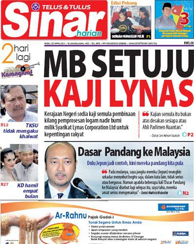 [size=85%]Seiring dan sejalan, akhirnya CEO Lynas didahulukan dan rakyat diabaikan