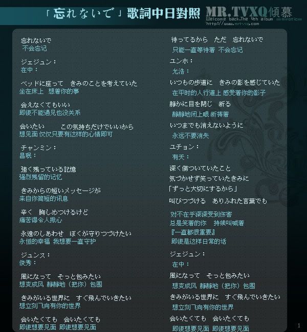 「忘れないで」歌词中日对照