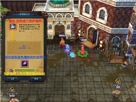 所需道具:单彩、双彩或三彩护身符以及已经成功吸取蓝色属性的对应符文,都准备好以后就可以去对护身符进行上色了。
