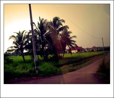 路上经过一个有稻田的马来Kampung