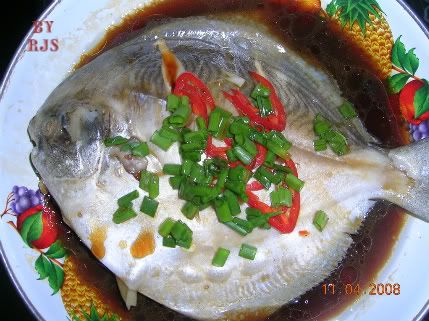 再把热油淋上去,留下一些油爆香蒜头,姜片,葱白和红辣椒,