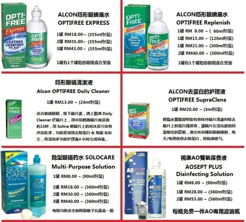 ~ ~ ~ 隐 型 眼 镜 药 水 ~ ~ ~ 120ml ~ ~ ~ RM 8.50 起 ~ ~ ~