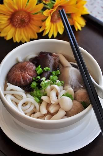用了4种不同的菌类 所以取名四菌乌龙面...呵呵