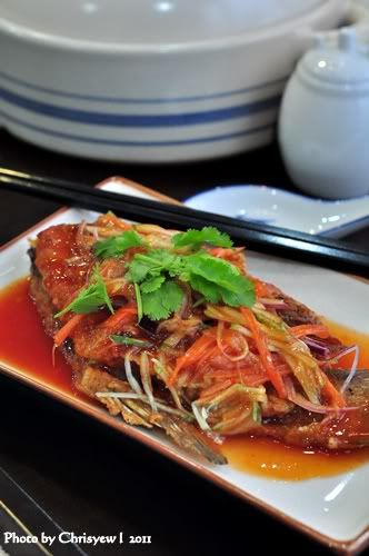 材料 - 石斑鱼(自选),配料切丝(随你喜欢),酱汁(番茄酱和辣椒酱,糖,水适量)