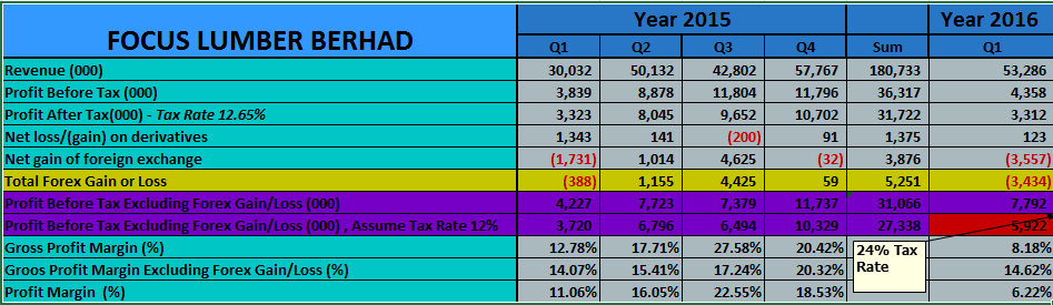 不过外汇始终是Extra bonus,公司的营业额以及产线优化才是刺激公司盈利走高的主因。因为Double tax deduction benefit在1月1号撤销,所以16Q1比去年Q1足足多了0.53 mil。所以单单在外汇以及TAX的影响之下,盈利足足减少了接近4 mil。这种情况可能接下来会发生在不少其他出口公司的身上。