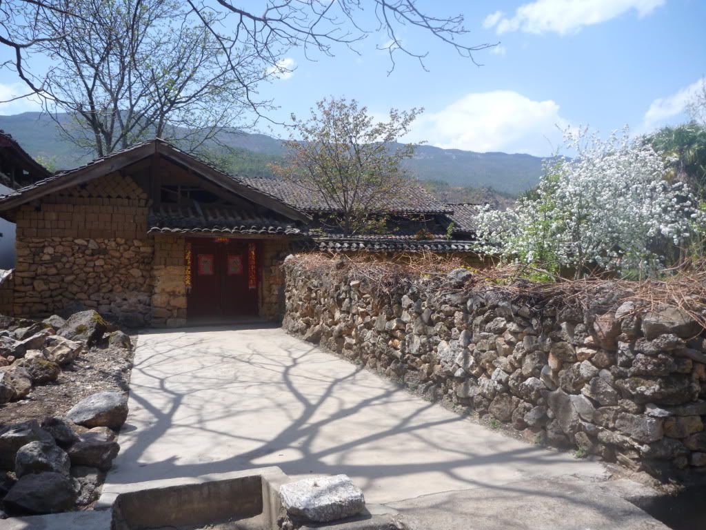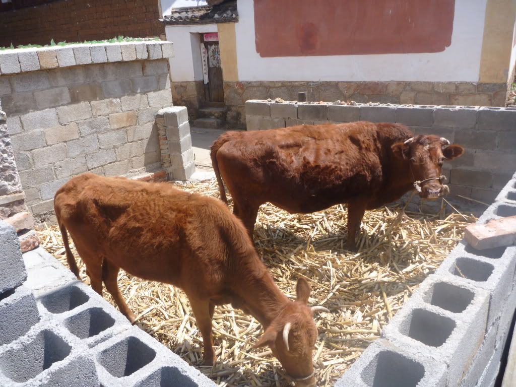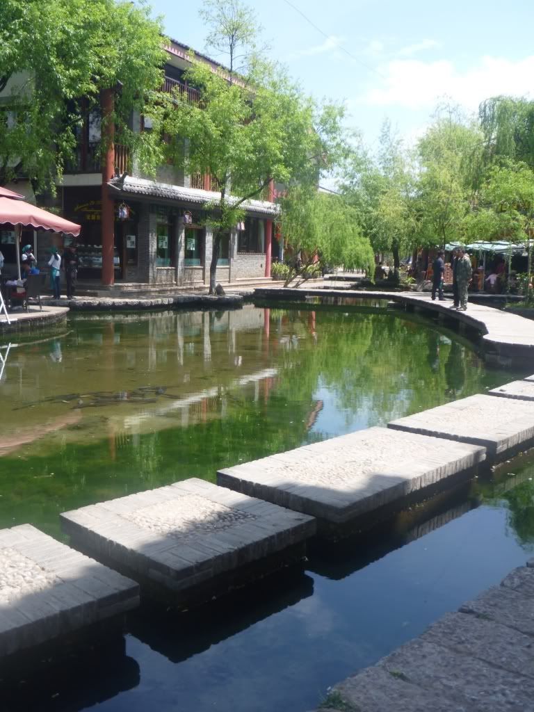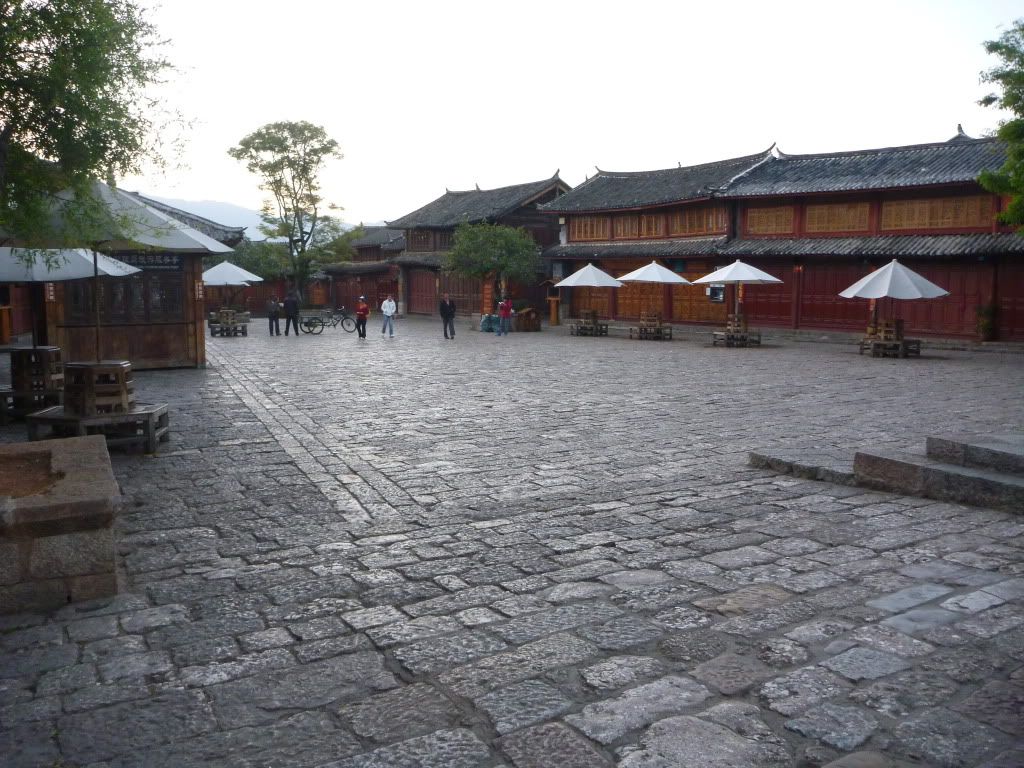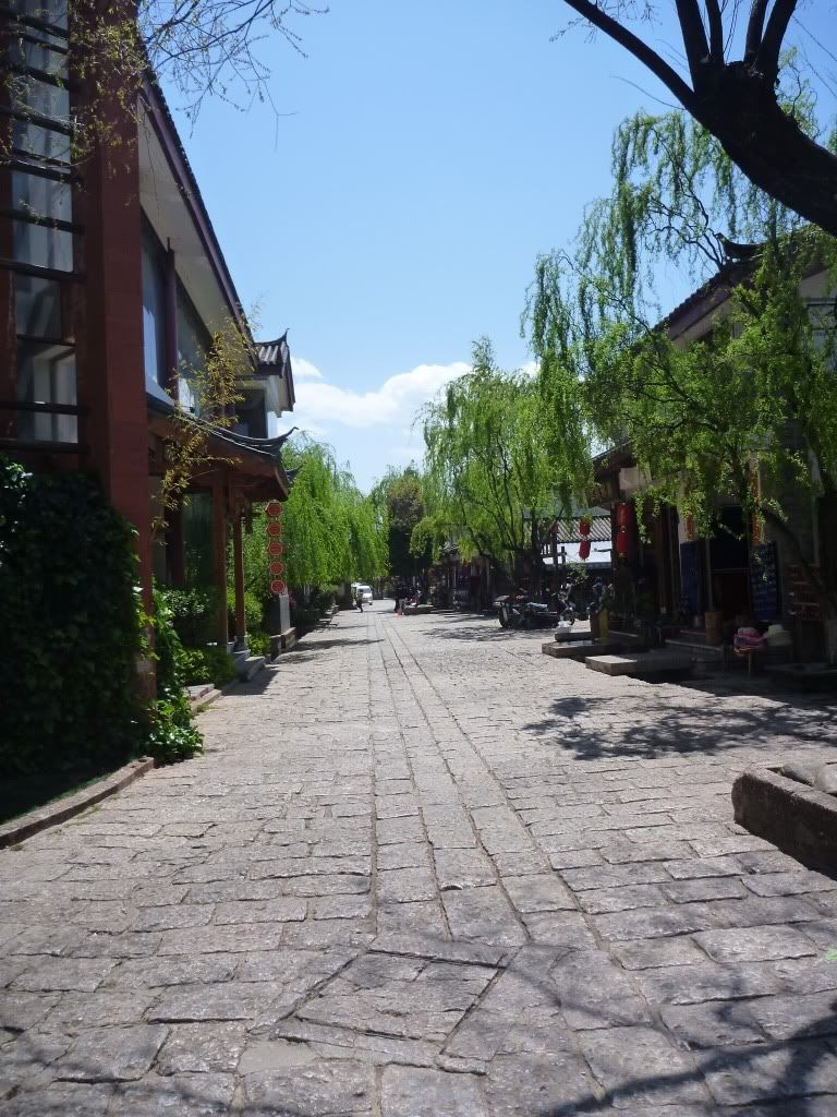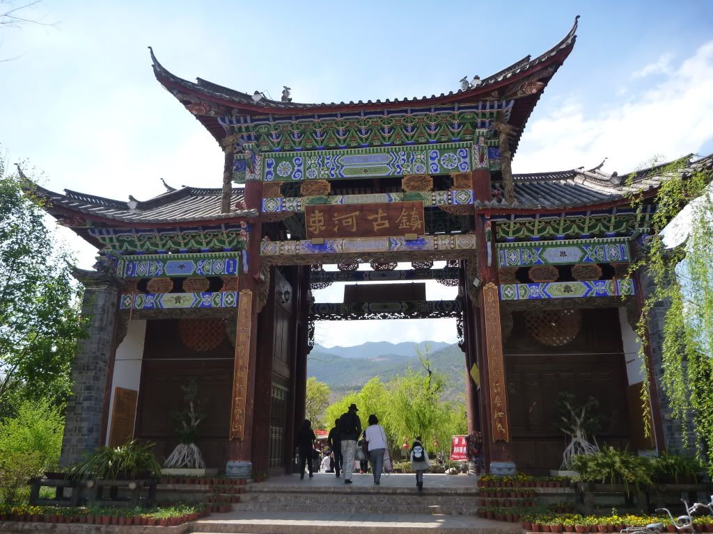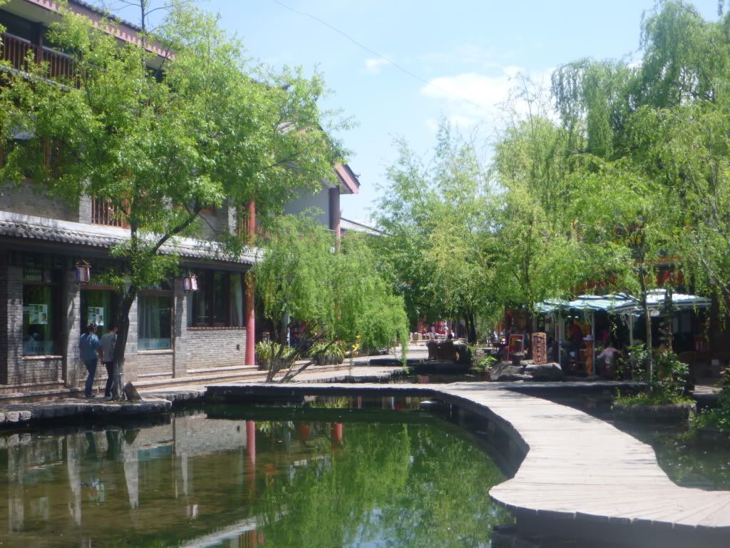 之后租了一辆双人骑脚车去白沙古镇(二少教的),一个没什么开发的古镇。踩呀踩呀踩呀踩,踩骑脚车去白沙,骑了20分钟到了白沙古镇。这双人骑脚车真的是中看(“感觉”浪漫)不中用(超难骑,脚酸,累) 。在白沙只逗留一个小时,因为老婆要回去束河"搏杀"(购物),所以白沙只是走了一小部分。回到束河购物后, 直接坐停在束河门口的面包车回古城RMB5一人。