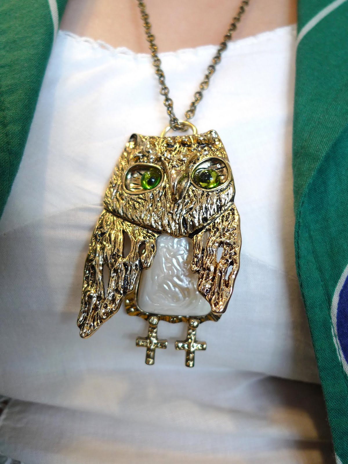一个蓝绿色牛仔包,一条蓝色皮革细腰带,一副棕色大苍蝇眼镜,