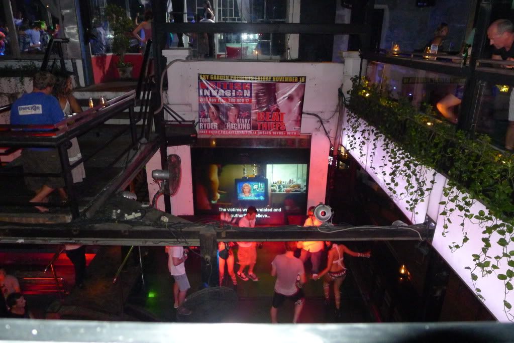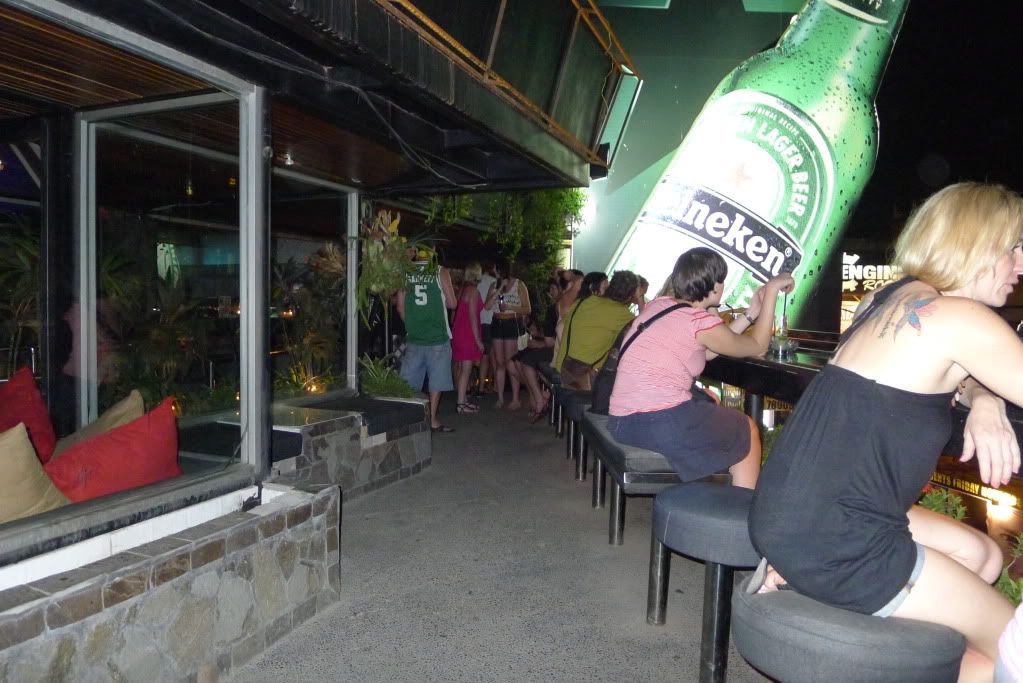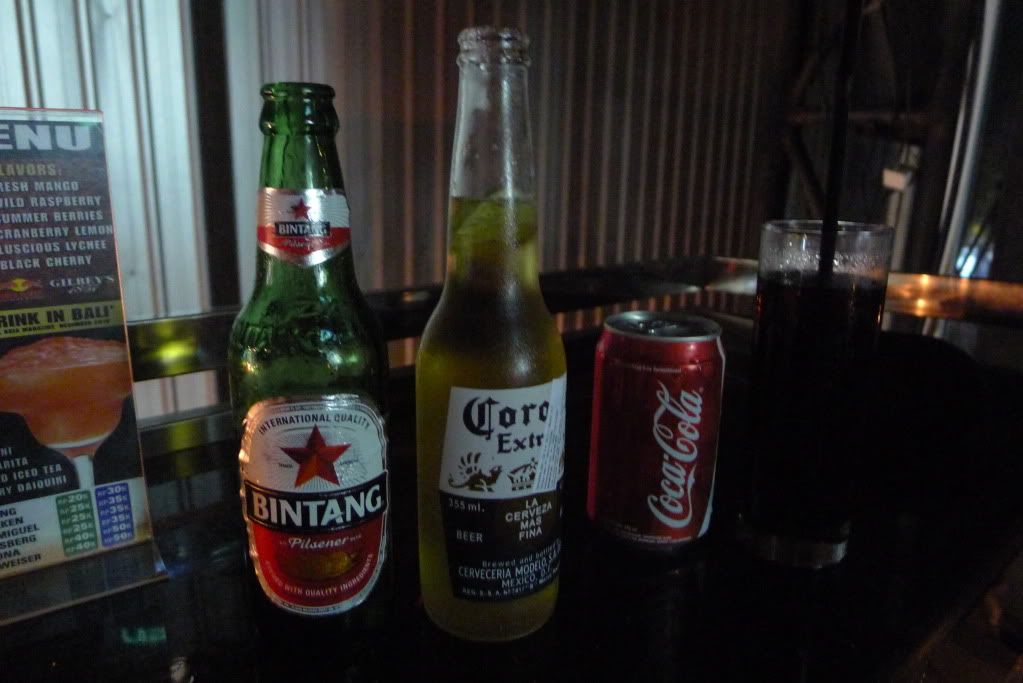 在马来西亚的我们,一向来都喝贵酒.所以在这里的酒钱,难不倒我们咯~~一支bintang才20千~~12点后就30千一支.这里经过了爆炸事件后,变成守卫很严,一进门时,大家都要搜身.还要被炸弹测量器,测一翻才能进去~~ |