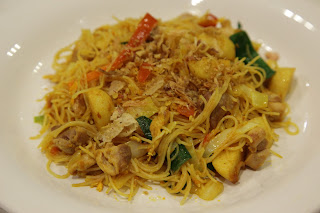 4. 这时才把泡软的米粉加进来。然后放一点黄姜粉(让颜色看起来黄黄的)
