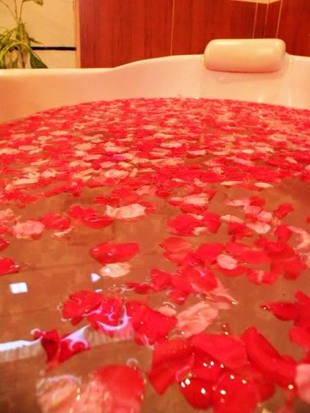 做完spa,洗澡之後泡在熱熱的花水裏,好舒服~~